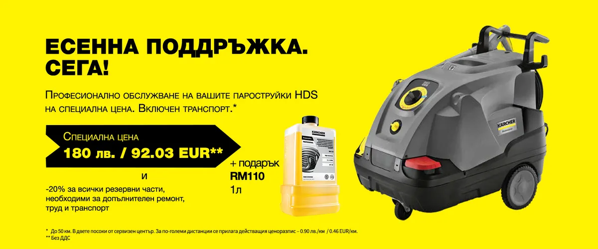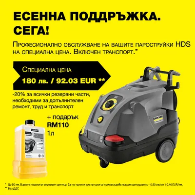 В професионалното почистване е необходимо да се извършват множество различни задачи, всяка от които с индивидуални изисквания, тях Керхер решава безпроблемно чрез своите уреди. За малки и големи фирми, за промишлени предприятие, гастрономи и супермаркети, за градината и за селскостопанския двор - Керхер ще Ви предложи вярното решение за трайно почистване с грижа към природната среда. Тук се предлагат популярните професонални пароструйки; водоструйки и метачни машини и множество други ефективни и енергоспестяващи уреди за почистване.