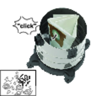 Press the filter bag with the plastic ring on the device connection with your fingers until it clicks into place.