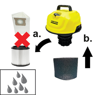 Before vacuuming up wet dirt, you must first remove the filter bag and then remove the cartridge filter.