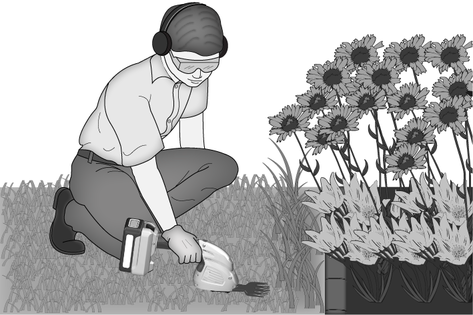 Tragen Sie beim Arbeiten mit dem Gerät lange, schwere Hosen, festes Schuhwerk und gut sitzende Handschuhe. Arbeiten Sie nicht barfuß. Tragen Sie keinen Schmuck, keine Sandalen oder kurze Hosen.