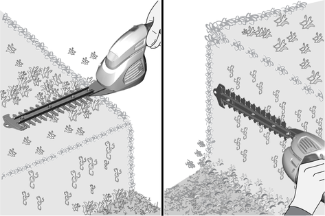 e) Halten Sie alle Körperteile von der Klinge fern. Entfernen Sie kein geschnittenes Material und halten Sie das zu schneidende Material nicht fest, wenn sich die Messer bewegen. Die Messer bewegen sich weiter, nachdem der Schalter ausgeschaltet wurde. Ein Moment der Unachtsamkeit bei der Bedienung der Heckenschere kann zu schweren Verletzungen führen.