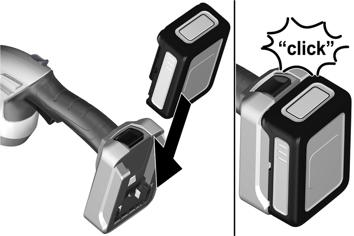 Akkupack in die Aufnahme schieben bis er einrastet.