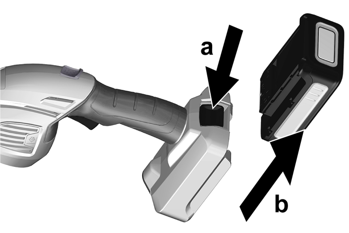 Die Entriegelungstaste Akkupack drücken, um den Akkupack zu entriegeln.