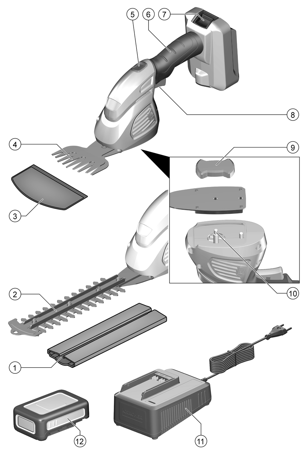 h) Verwenden Sie für den Transport oder die Lagerung der Heckenschere immer die Messerabdeckung. Die richtige Handhabung der Heckenschere verringert die Gefahr von Verletzungen durch die Messer.