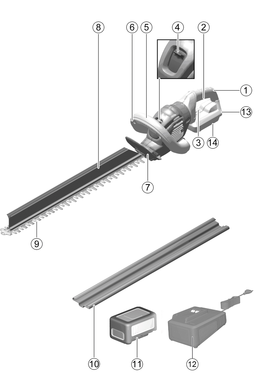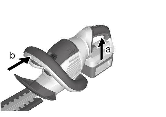 Nehmen Sie den Akku vor dem Transport aus dem Gerät.Transportieren Sie die Heckenschere nur mit angebrachtem Messerschutz.Nichtbeachtung des Gewichts