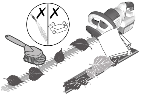 Messer und Motorgehäuse mit einer Bürste von Pflanzenresten und Schmutz befreien.