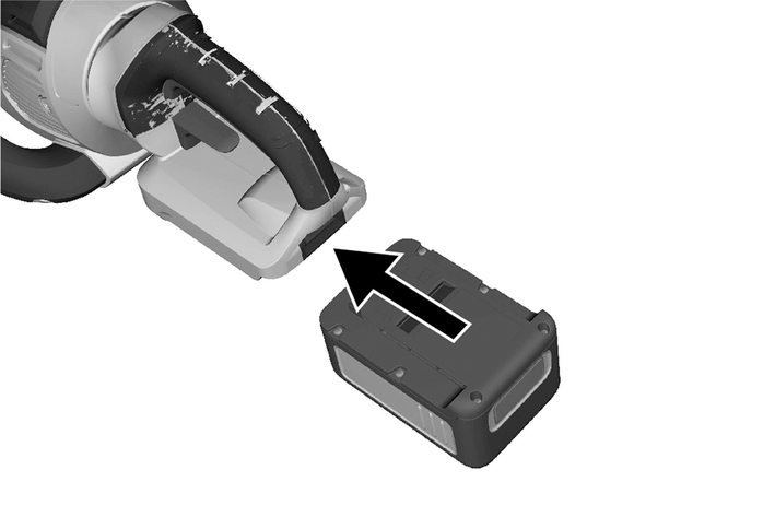 Akkupack in die Aufnahme schieben bis er einrastet.