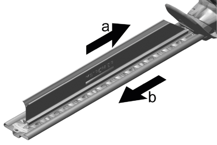 Nehmen Sie den Akku vor dem Transport aus dem Gerät.Lagern Sie die Heckenschere nur mit angebrachtem Messerschutz.Das Gerät darf nur in Innenräumen gelagert werden.