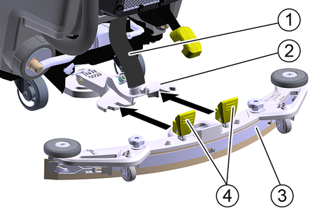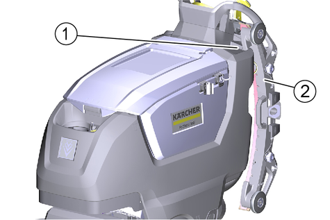 Bei der Fahrt durch Engstellen oder zur Lagerung kann der Saugbalken demontiert und am Rand des Gerätes eingehängt werden.