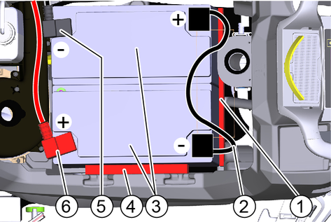 ![]() | GEFAHRLadevorgang Elektrischer Schlag Entfernen Sie keine Polschutzkappen an den Batteriepolen.Achten Sie auf korrekte Montage |
