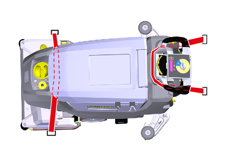 Die Arbeitsbreite und das Fassungsvermögen der Frisch- und Schmutzwassertanks (siehe Kapitel Technische Daten) ermöglichen eine effektive Reinigung bei hoher Einsatzdauer.