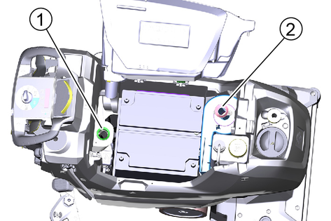 Wird der Fahrhebel losgelassen, schalten der Fahrantrieb und der Bürstenantrieb aus.