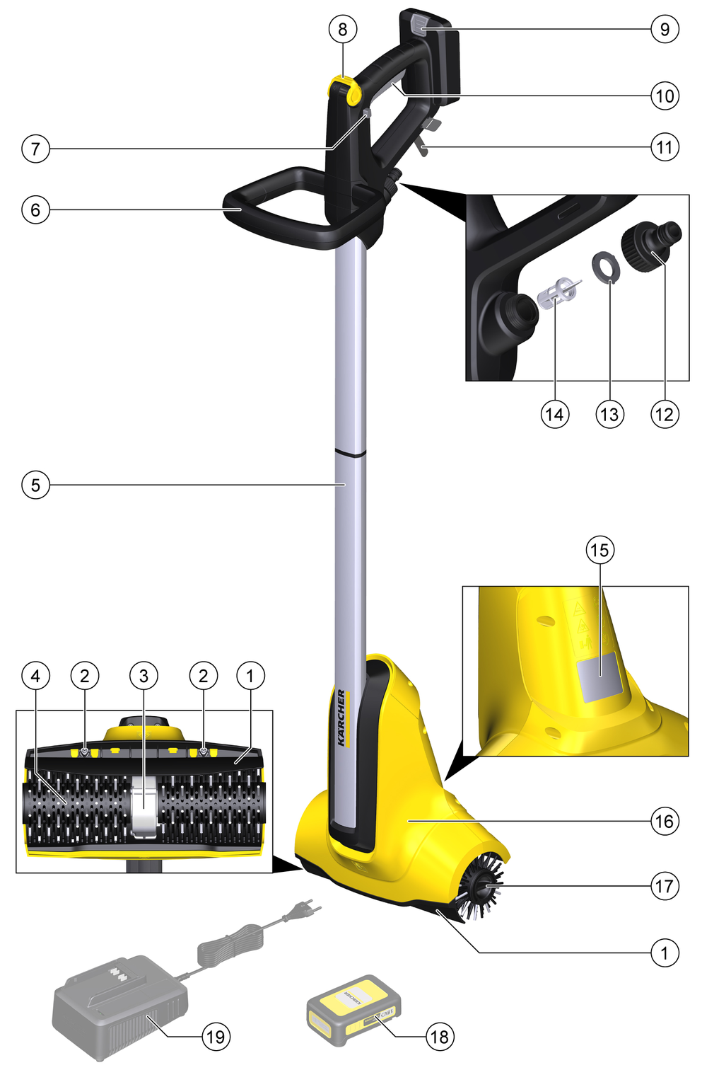 Das Gerät ist zum Entfernen von Verschmutzungen von Oberflächen im Außenbereich, wie zum Beispiel Terrassen bestimmt. Abhängig von den eingesetzten Bürsten, eignet sich das Gerät für Holzflächen, glatte Steinfliesen und Verbundwerkstoffe (WPC).