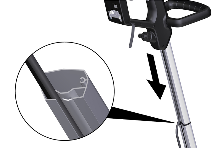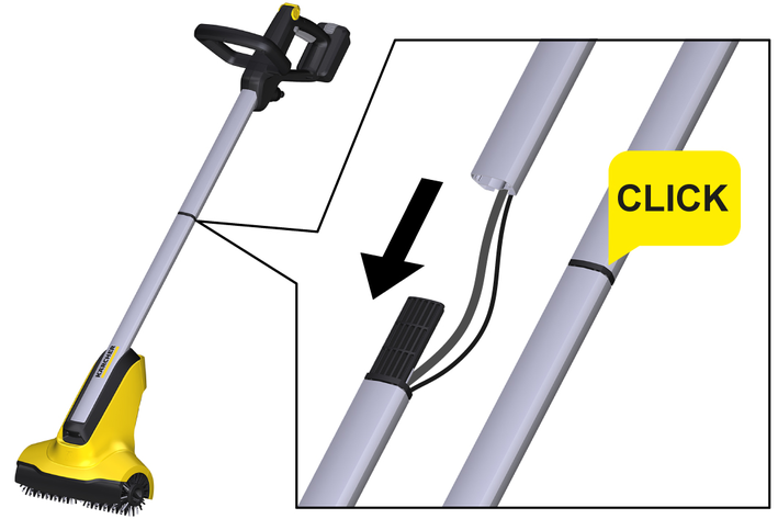 Die Montage des Stiels erfolgt einmalig. Nach der Montage sollen die Stielhälften nicht mehr getrennt werden. Achten Sie bei der Montage darauf, dass der Wasserschlauch und das Kabel nicht eingeklemmt oder gequetscht werden.