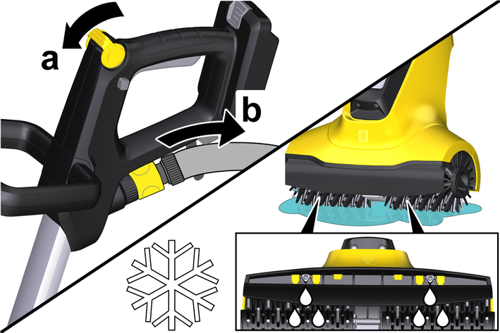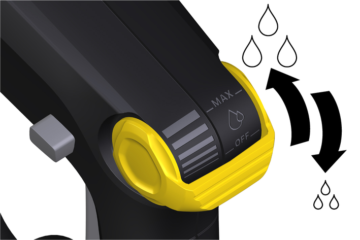 Die Menge des über die Düsen am Gerät ausgebrachten Wassers kann über das Wassermengenregulierventil eingestellt und der Reinigungsaufgabe angepasst werden.