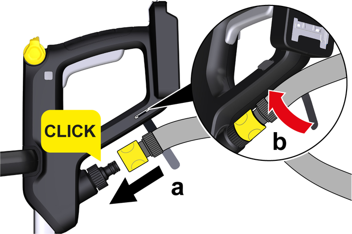 Den Wasserschlauch aufstecken. Die Kupplung muss hörbar einrasten.