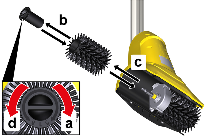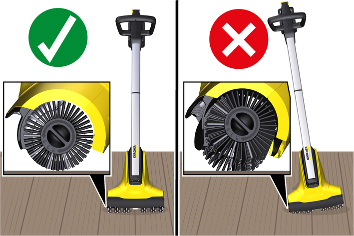 Nur geeignete Bürsten verwenden. Die Eignung der Bürsten hängt von der zu reinigenden Oberfläche ab.