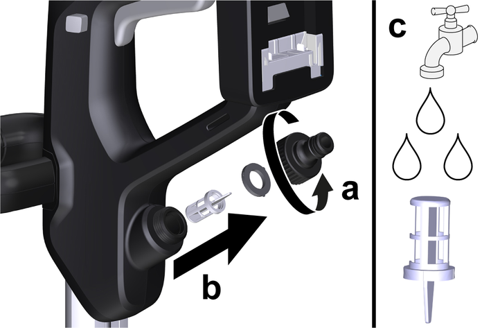 Den Wasserschlauch zur Entlastung mit Klettband am Griff sichern.