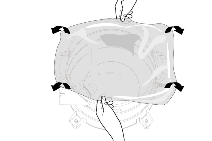 Den neuen Entsorgungsbeutel in den Schmutzbehälter einsetzen und sorgfältig an die Behälterwand und am Behälterboden anlegen.