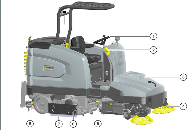 本设备设计用于清洁室内地板或被覆盖的表面。在其他应用中,必须检查使用备用毛刷或清扫装置的使用情况。