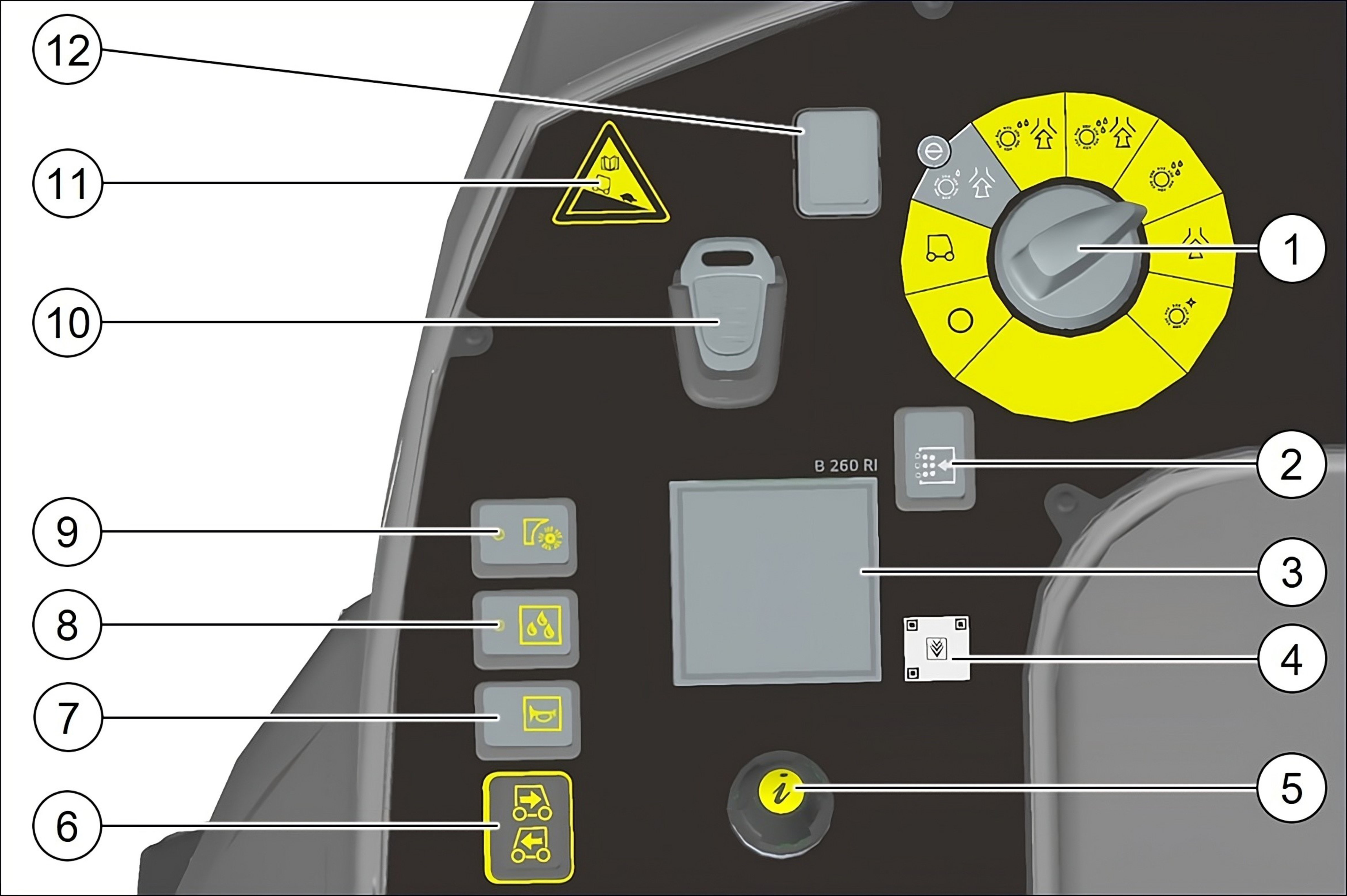 如果操作人员在作业运行期间或者驾驶期间离开座椅,则座椅开关会在短暂延迟后关闭行进马达。