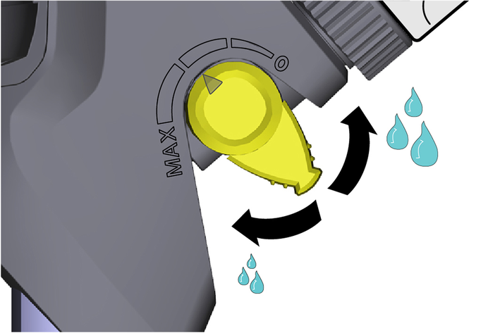 Mängden vatten som kommer ut ur apparatens munstycken kan ställas in med vattenreglerventilen och anpassas med rengöringsuppgiften.