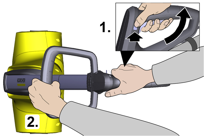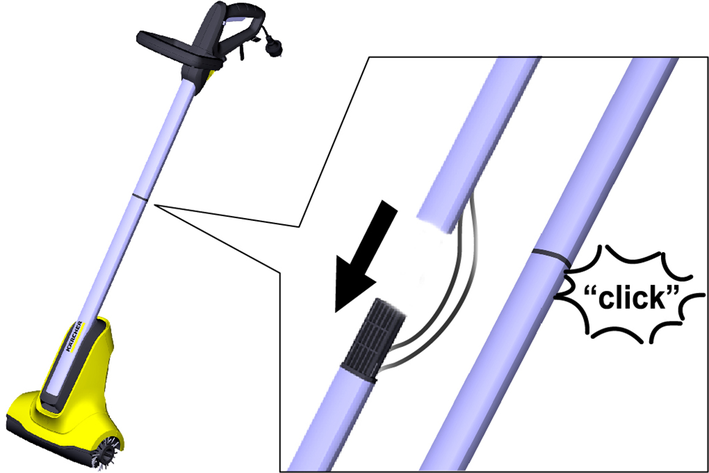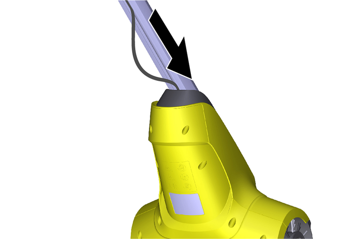 Skaftet monteras en gång. Efter monteringen får skafthalvorna inte längre separeras. Se vid monteringen till att vattenslangen och nätkabeln inte kläms eller krossas.