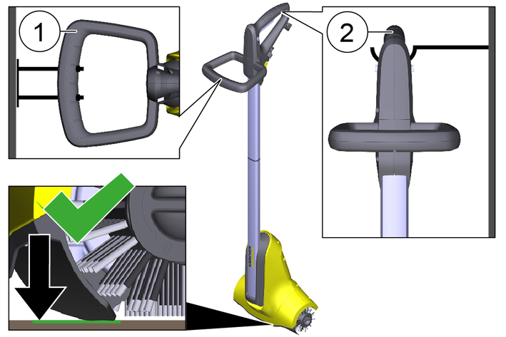 Koppla endast till apparaten om borstarna ligger an mot marken.