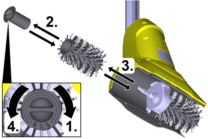 Byt alltid båda borstarna samtidigt. Borstarna måste bytas när växelhuset berör ytan under rengöringen utan att du utövar tryck på apparaten.