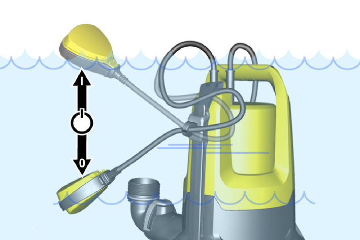 Place the pump securely on solid ground in the pumped liquid or immerse it via a rope attached to the carrying handle.