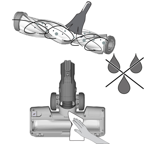 Při čištění dbejte na to, aby kabely nebo kontakty nebyly mokré.Nádobu na prach očistěte měkkým kartáčem nebo mírně navlhčeným hadříkem Cyklónový filtr lze čistit pod tekoucí vodou.
