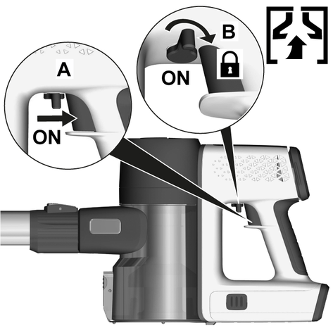 Zabraňte neúmyslnému zapnutí. Ujistěte se, že se vypínač před připojováním akupacku, před zdviháním nebo přenášením přístroje nachází ve vypnuté poloze.