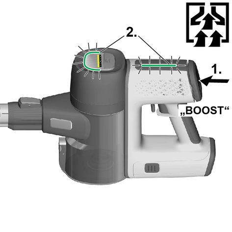 Zapněte přístroj a nechejte jej běžet v režimu Boost, zároveň otočte boční kryt.