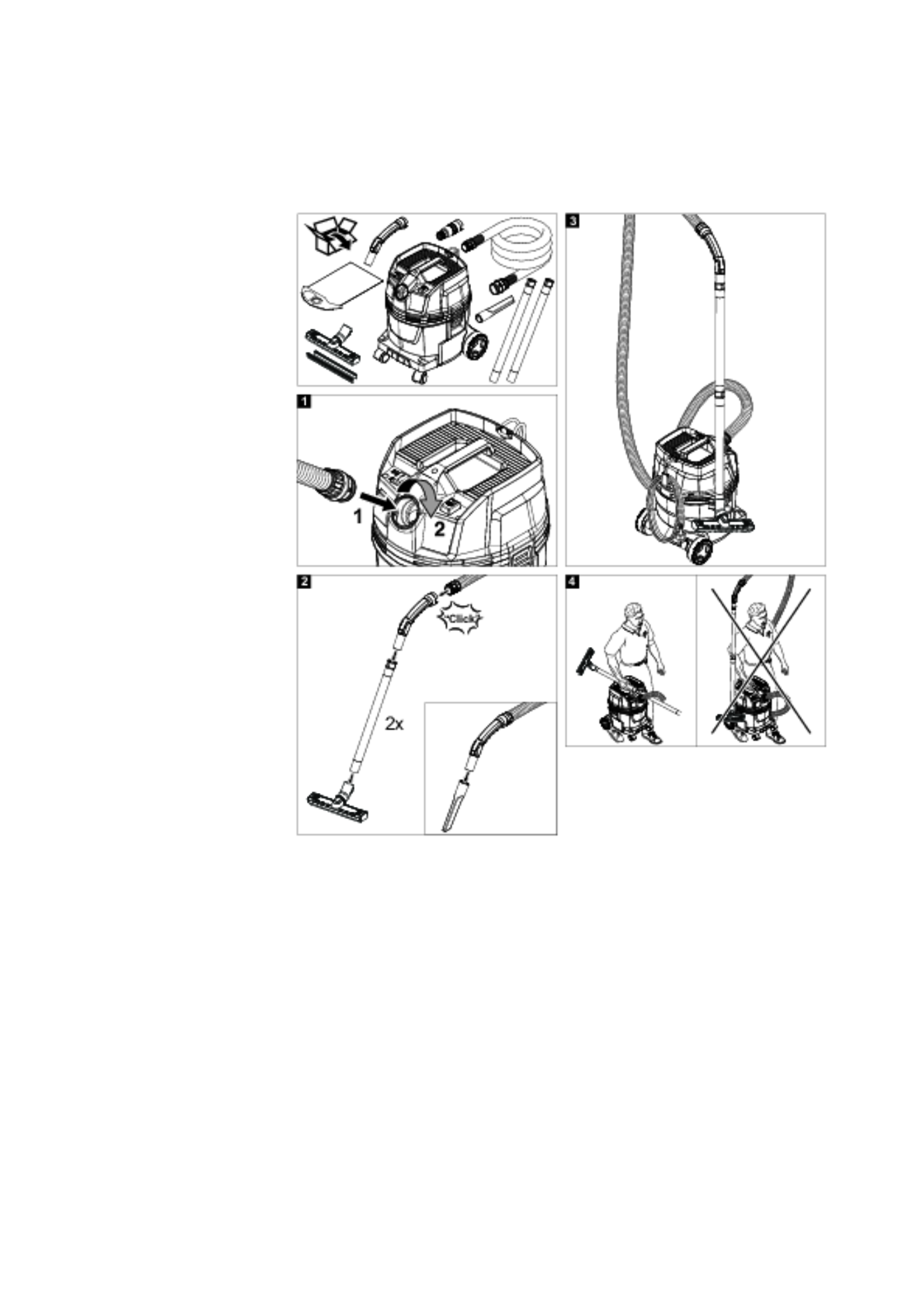 WARNING: This device contains dusts that are harmful to your health. Emptying and maintenance, including removal of the dust bag, may only be performed by appropriately trained personnel wearing suitable personal protective equipment. Do not switch on until the entire filter system is installed. |