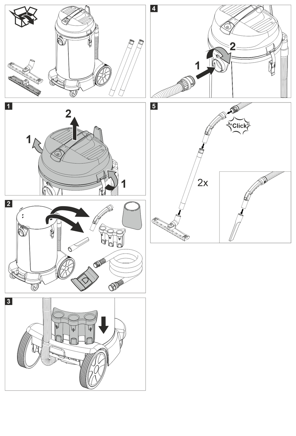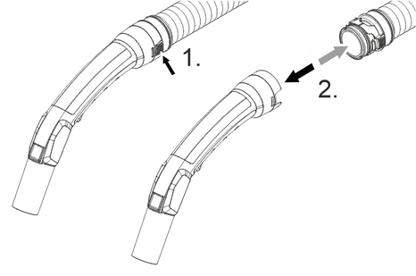 La manguera de aspiración está equipada con la conexión de clip 2.0. Se pueden conectar todos los accesorios con ancho nominal DN 35 y conexión de clip 2.0.