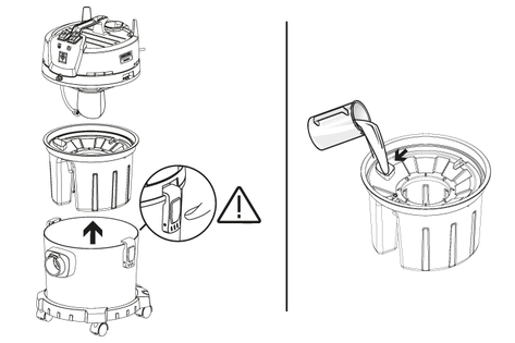 Trekk papirfilterposen (ekstrautstyr) over sugestussen (innsiden) på spillvannstanken.
