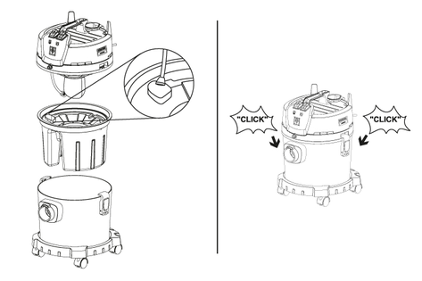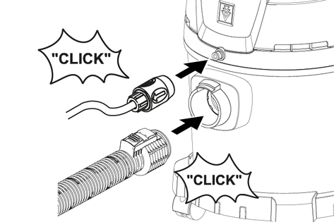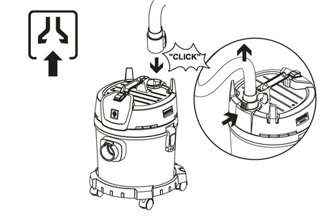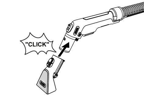 Før du bruker apparatet må du teste fargeekthet og motstandsdyktighet mot vann på et ikke iøynefallende sted på gjenstanden som skal rengjøres.Sett sugeslangen på apparatets sugestuss. Sett sprøyteslangens kobling på apparatets sprøyteslangetilkobling og la koblingen smekke på plass.
