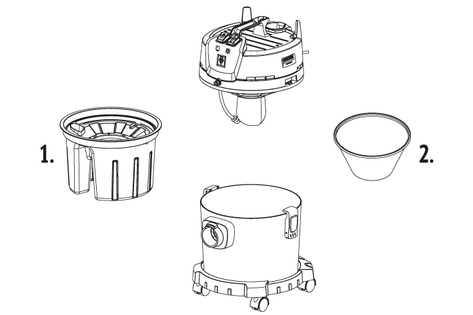 Sett filterkurven (ren og tørr) inn i spillvannstanken.