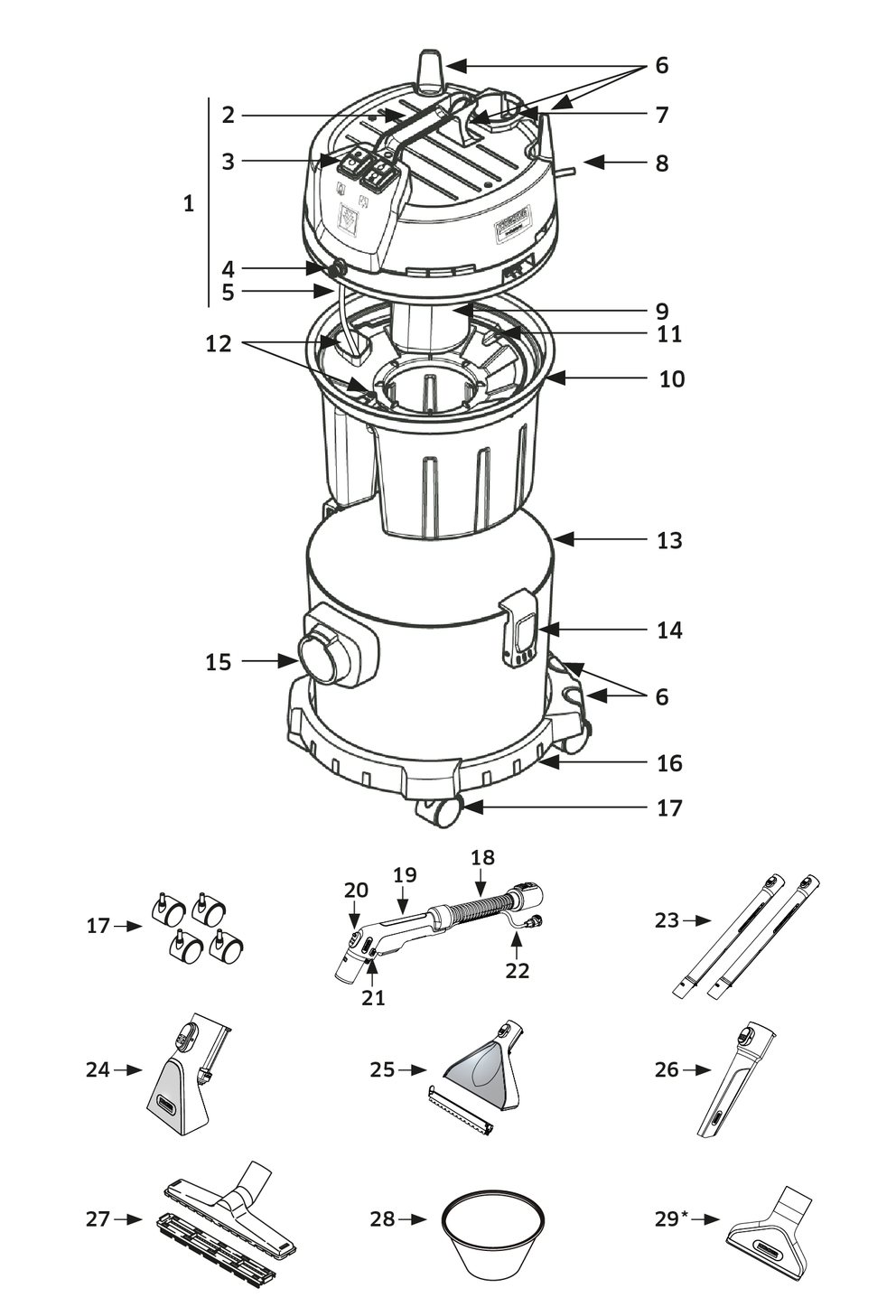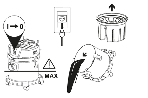Tørrsuging: Ved støvsuging av finstøv anbefales det å bruke en papirfilterpose (ekstrautstyr).