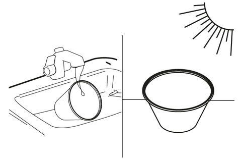 Bland rent vann og rengjøringsmiddel i en ren beholder (konsentrasjon som spesifisert for rengjøringsmidlet). Løs rengjøringsmidlet i vannet.