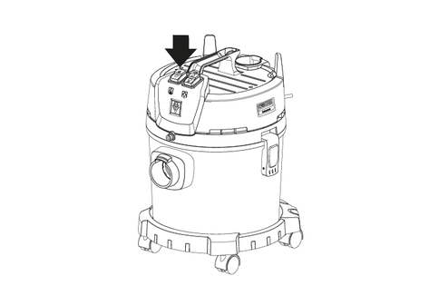 Trykk på suge-/blåsefunksjonsbryteren (posisjon I) for å slå på sugeturbinen.
