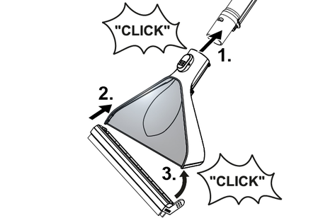 Sett Sprühex-gulvmunnstykket på sugerørene og lås det.