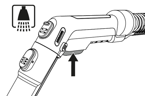 Trykk inn hendelen på håndtaket for å spraye på rengjøringsløsning. Det kan ta noen sekunder før rengjøringsløsningen suges inn.