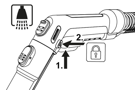 For å sprøyte på store flater må du først betjene spaken på håndtaket og deretter trykke på låsetasten.