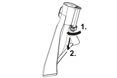 Rengjøring av Sprühex-gulvmunnstykket eller Sprühex-tekstildysen: Løsne dysefestet ved å dreie det, og trekk det ut sammen med dysemunnstykket.