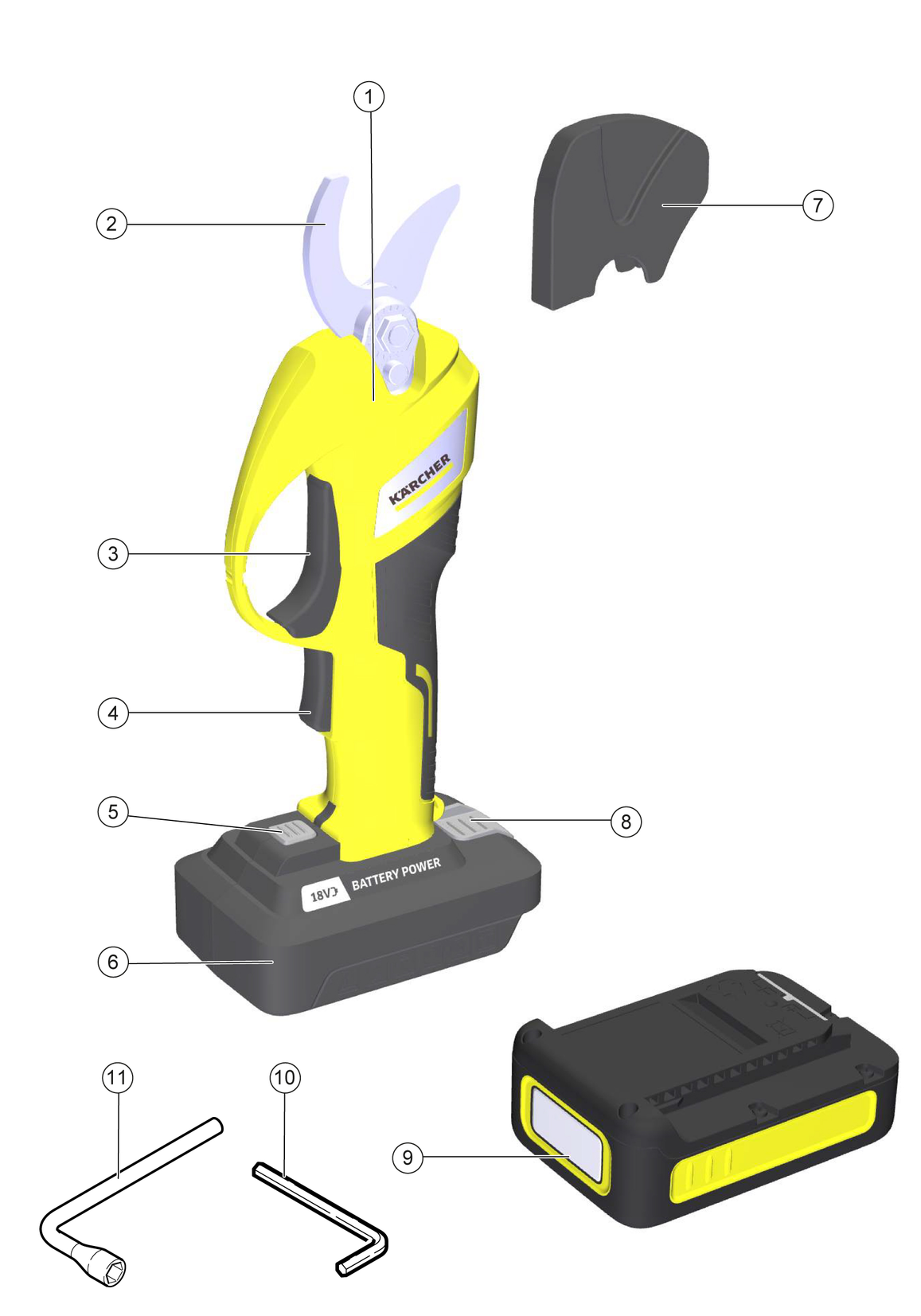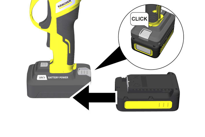Verwenden Sie das Gerät ausschließlich mit Akkupacks und Ladegeräten des KÄRCHER 18 V Battery Power (+) Systems.