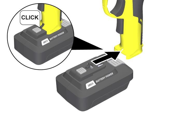 Akkupack in die Aufnahme schieben bis er einrastet.