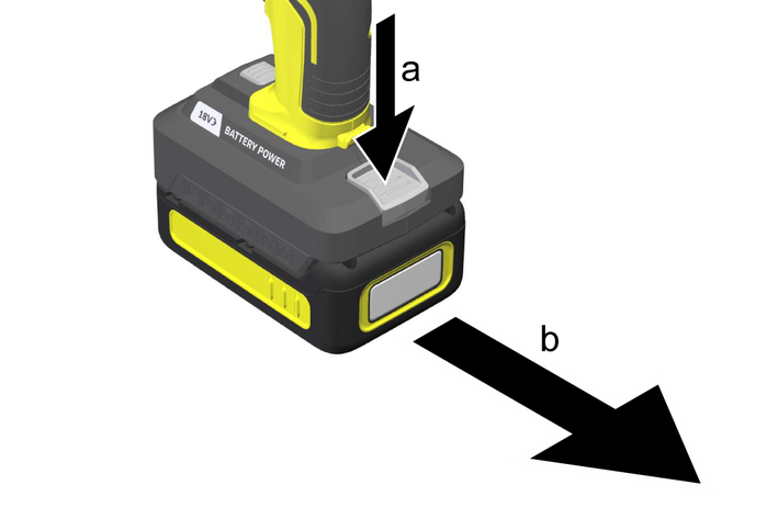 Die Entriegelungstaste Akkupack drücken, um den Akkupack zu entriegeln.