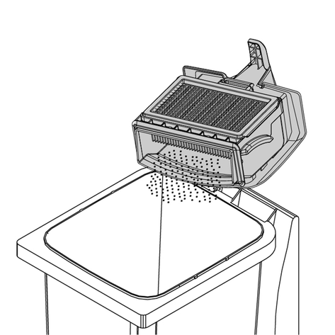 Die Filterkassette über einem Mülleimer entleeren. Bei stärkerer Verschmutzung Filterkassette gegen den Rand des Mülleimers klopfen. Der Flachfaltenfilter muss dazu nicht aus der Filterkassette entnommen werden.