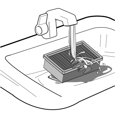 Den Flachfaltenfilter unter fließendem Wasser reinigen. Nicht abreiben oder abbürsten.